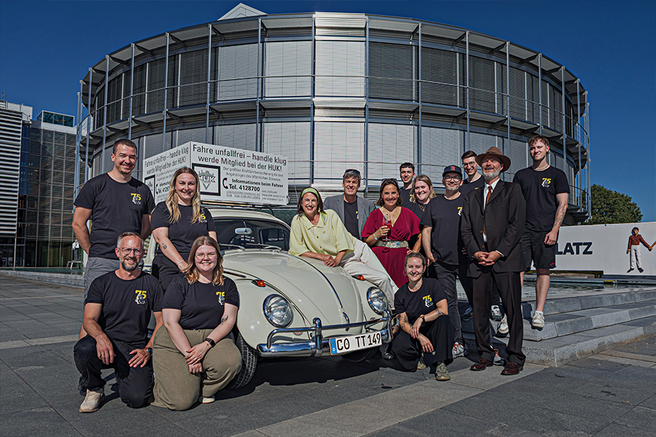 Statt PowerPoint und Grußworten setzte man auf Dramaturgie. Ein Schauspieler erzählte die Geschichte des Versicherungsunternehmens nach – begleitet von Filmen, Musik aus den jeweiligen Jahrzehnten und eben jenem liebevoll restaurierten Käfer. „Die gemeinsame Grundidee war es, unsere HUK-Firmengeschichte überraschend echt zu erzählen – am Ende war es beinahe ein Th eaterstück“, so Lutz. „Viele kleine Elemente haben unsere Historie zum Leben erweckt.“