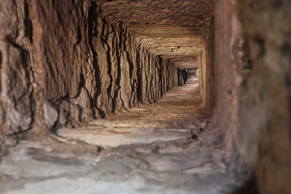 An einem Schlitz bleibt Süß stehen. Links und rechts sind sorgsam errichtete Mauern. Nach unten geht es weiter als der Schein der Taschenlampe reicht, nach oben auch. Egal welches Wetter draußen ist, egal welche Jahreszeit oben die Festungsanlage umhüllt, hier unten hat man immer die gleichen Temperaturen wie in einem alten Keller. Und es ist still. Von außen dringen hier keine Geräusche hinein.