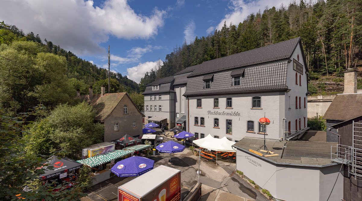 1964 verliebt sich ein angesehener Berliner Konditor in die Müllerstochter der altehrwürdigen Fischbachsmühle und kommt in den Frankenwald, um mit Liebe Pralinen zu kreieren. Im ehemaligen Mühlen- und Silogebäude der Fischbachsmühle werden Pralinen in Handarbeit gefertigt. 1965 erfolgt die Gewerbeanmeldung einer Pralinenfabrikation. Zur Lauenstein Confiserie wird das Unternehmen 1989. Seither sind die Pralinen aus dem Frankenwald zum Inbegriff für höchste Pralinenkultur in bester Manufakturqualität geworden. Im Jahr 2007 zieht die Hauptproduktion in die Manufaktur nach Teuschnitz. Die Fischbachsmühle wird 2008 nach aufwendigen Renovierungs- und Restaurationsarbeiten zu einem einzigartigen Genuss- und Ausflugsziel.