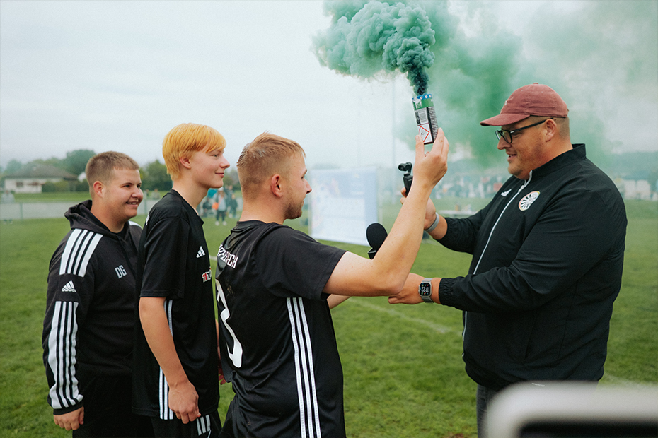 Für eine Saison lang sind Menschen mit Behinderung fester Bestandteil eines echten Vereins – mit allem, was dazugehört. Wer für welchen Club aufläuft, entscheidet sich beim traditionellen Scouting Day. Eine Saison umfasst vier Spieltage – jeder Verein ist einmal Gastgeber. Gemeinsam reisen die Teams der Quattro Liga durch den Landkreis, von Spieltag zu Spieltag und von Ort zu Ort. Begegnung, Gemeinschaft und echtes Vereinsleben stehen dabei immer im Mittelpunkt.